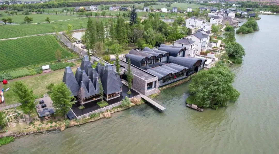 農(nóng)創(chuàng)村距離蘇州半小時車程,臨近京杭運河,河網(wǎng)密布、水系發(fā)達,民居多為沿河而建。