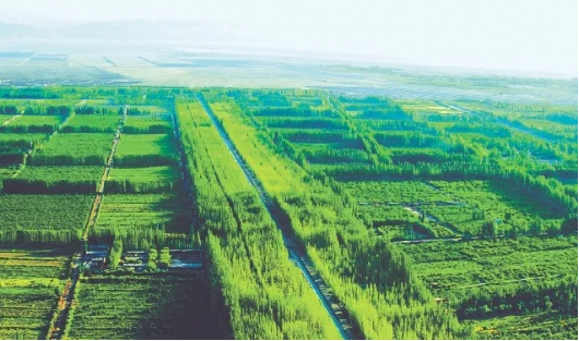 長期以來,“三北”工程始終堅持治沙致富并重、增綠增收并舉。三北各地堅持生態產業化、產業生態化,把“三北”工程融入地方經濟社會發展全局,統籌防沙治沙和民生改善,實現生態、經濟、社會效益相協調,有力激發攻堅新動能。黃土高原、燕山山地、新疆綠洲等地因地制宜發展紅棗、核桃、蘋果等特色產業,干鮮果品產量占到全國1/4。華北、東北等糧食主產區依托農田防護林網,數億畝農田得到有效庇護。